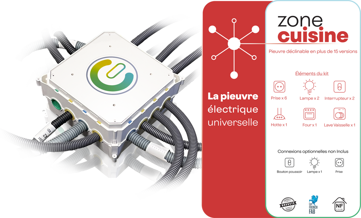 Faites évoluer votre pieuvre universelle basic en plus de 15 versions grâce aux 16 emplacements de gaine du boitier. Attention, ce produit n'est pas domotisable.